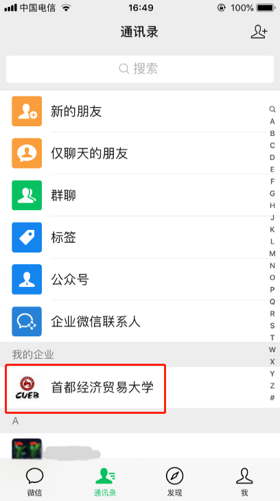 打开微信--通讯录--我的企业--首都经济贸易大学--本科教育--进入主页--课堂签到