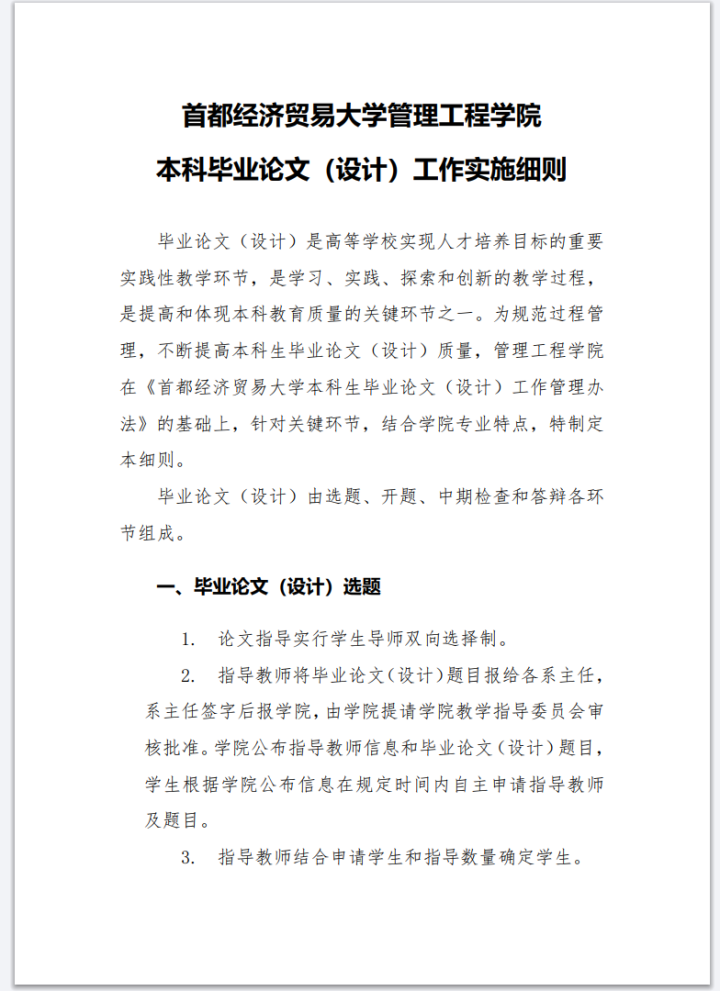 管理工程学院制定的《本科毕业论文(设计)实施细则》