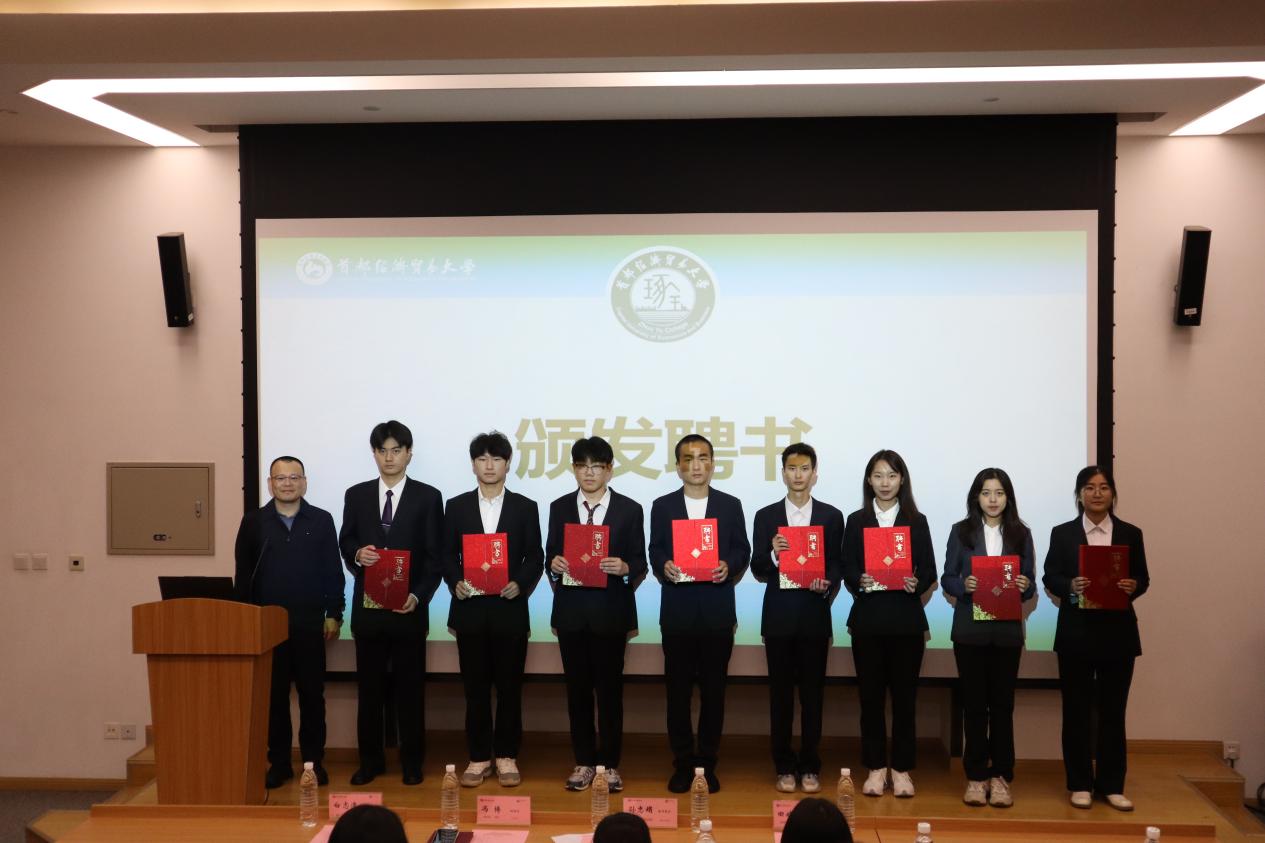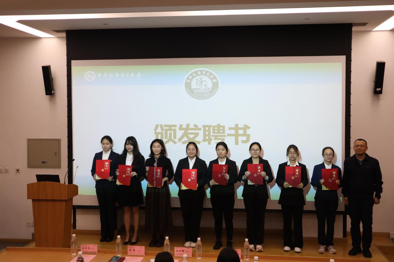 冯博为第一届直属团支部、学生会各部门负责人逐一颁发聘书。这份聘书饱含着书院对团学组织未来的殷切期待。