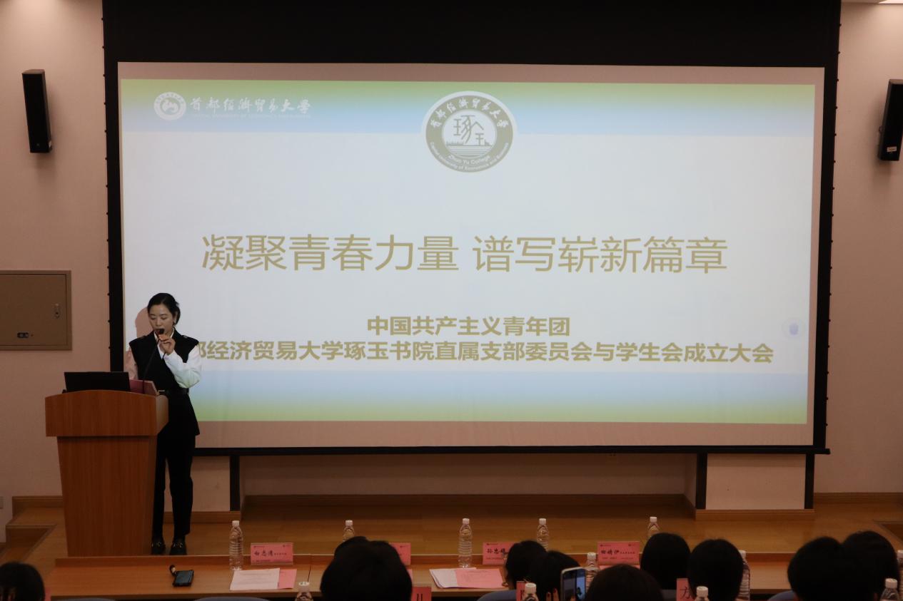 2025年10月11日下午,中国共产主义青年团首都经济贸易大学琢玉书院直属支部委员会与学生会成立大会在博远楼2号报告厅隆重举行。琢玉书院执行院长孙忠娟、副院长冯博莅临指导,支部委员会与学生会全体成员参会。会议由琢玉书院直属团支部书记白志清主持。