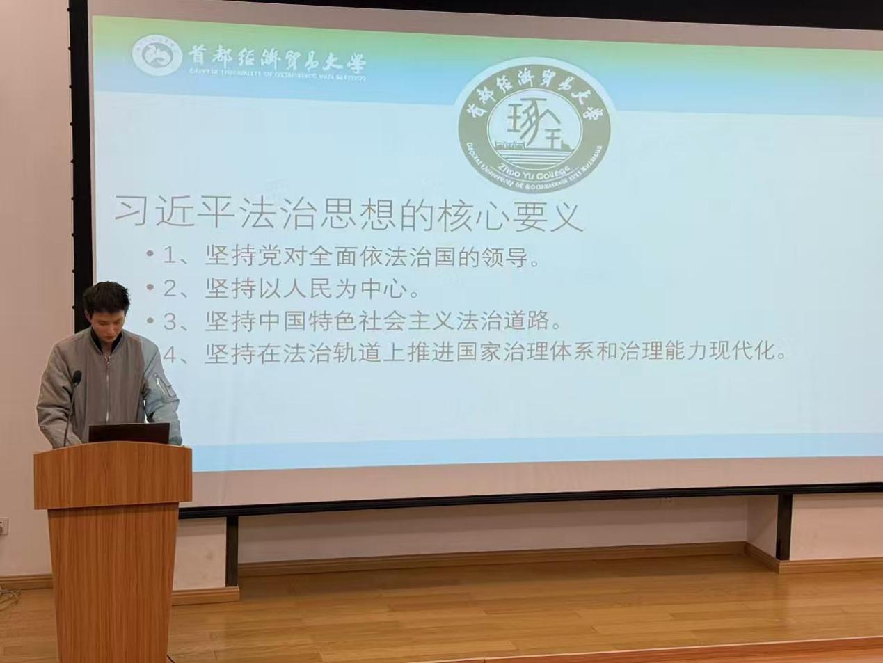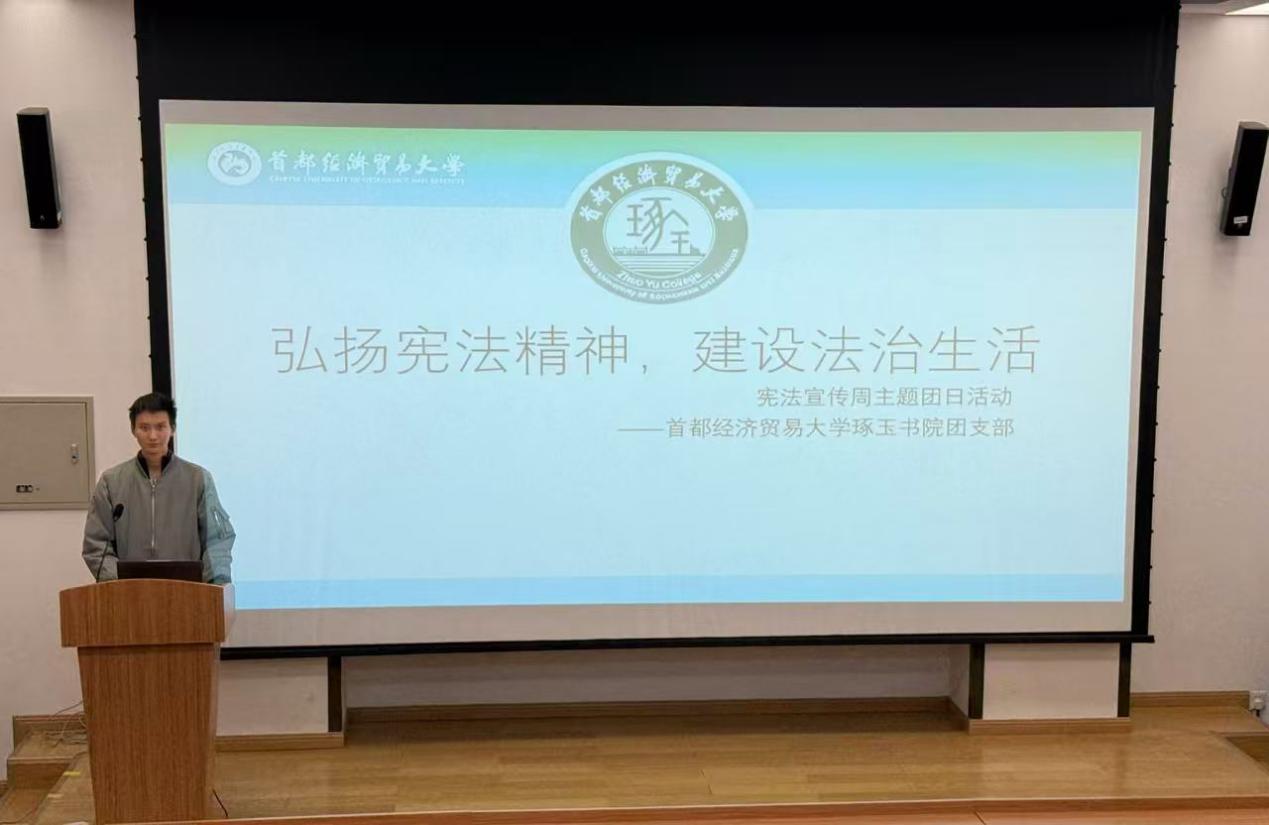 为深入学习宣传贯彻党的二十大精神,认真落实习近平法治思想,在第十二个国家宪法日来临之际,首都经济贸易大学琢玉书院直属团支部于2025年11月3日组织开展"弘扬宪法精神,建设法治生活"主题团日活动。支部全体团员参加活动。