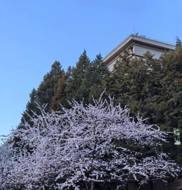 三月的清华园,蓝天与楼宇间,杏花烂漫。