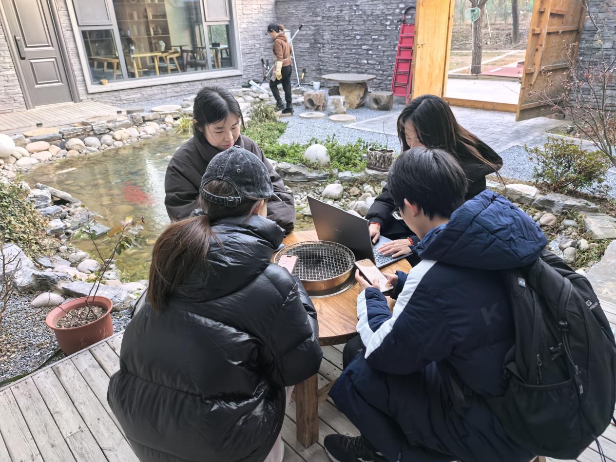 在村委会的会议室里,调研团队与赵家洼村村两委干部张连庆展开座谈:在乡村韧性建设方面,双方围绕极端自然灾害对乡村基础设施、产业发展、民生保障带来的影响,交流当前乡村在风险预警、应急响应、灾后恢复等环节存在的难点问题,为“经·彩杯”“挑战杯”社会调研项目提供了鲜活的实践案例与问题导向;在合作协作方面,琢玉书院实践团队计划在现有的乡村振兴工作站基础上,与北京农村产权交易所及赵家洼村两委合作,三方共建村级产权信息点,谋划乡村“数智小院”项目,拟通过搭建专业化信息服务平台,激活农村产权流转活力,为村集体经济发展赋能。同时,针对村校产教融合,双方围绕人才培养、技术支持、项目孵化等方向,双方探讨建立“书院智力支持 +乡村实践场景”的协同机制,计划在民宿品牌升级、新媒体营销与运营等领域开展合作。