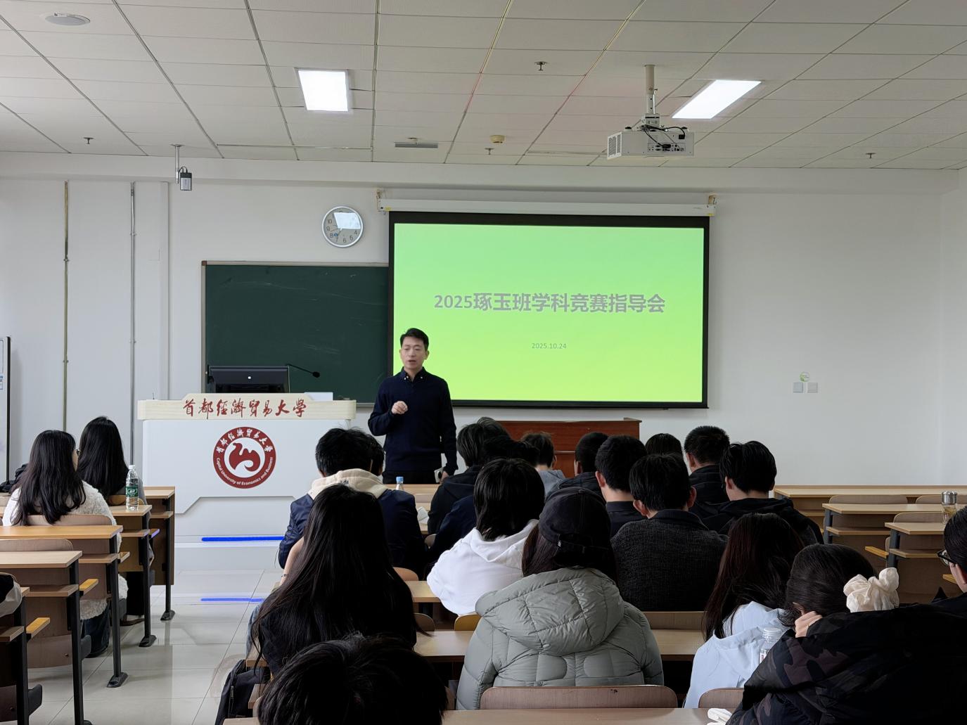 为助力琢玉书院竞赛小组快速进入学术实践与创新创业类竞赛状态,帮助成员全面掌握各类竞赛赛制及要求,精准结合专业特色与团队兴趣确定竞赛选题,并依据各赛事日程科学倒排工作时序与节点,保障竞赛工作有序高效开展,10 月 24 日琢玉书院在博学楼 502 举办学术实践与创新创业类竞赛指导会。教务处张馨丹、刘志敏老师负责组织与主持本次活动,校团委孙宏皓老师担任主讲人,琢玉书院竞赛小组全体成员参与指导会。